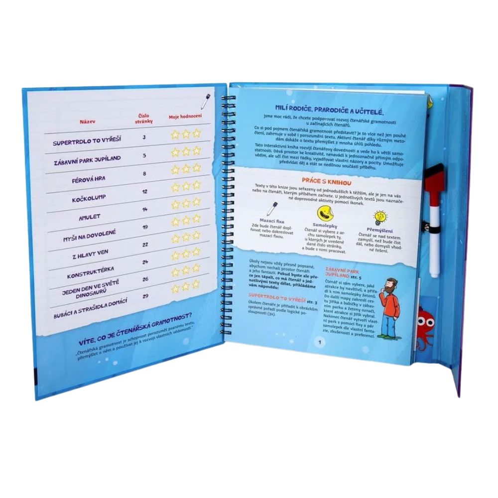 10 zajímavých příběhů ke společnému čtení s dospělým - každý příběh využívá různých interaktivních metod a láká malého čtenáře k zajímavým aktivitám - doplňuje chybějící informace, maluje plánky nebo mapy, domýšlí pokračování příběhu, dokresluje k obrázku detaily.