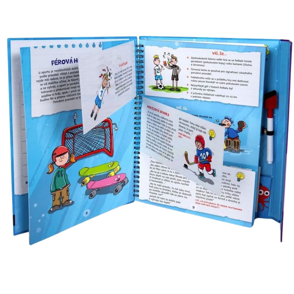 Kvídova kniha Hravé čtení 7+ obsahuje 30 stran s 10 příběhy a řadou úkolů, mazatelný fix a sadu samolepek. Co děti v knize čeká? Budou si číst, povídat si, kreslit, lepit samolepky, přemýšlet o příbězích nebo je domýšlet! Kniha má praktické zavírání na magnet.