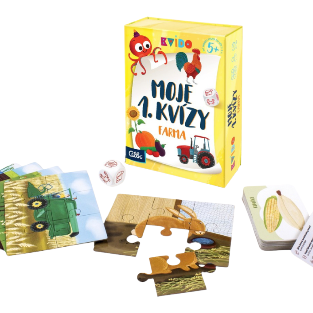 Během hry Moje první kvízy - Farma se děti seznámí s 50 vybranými pojmy, se kterými se mohou setkat na farmě či na venkově a které je užitečné znát.