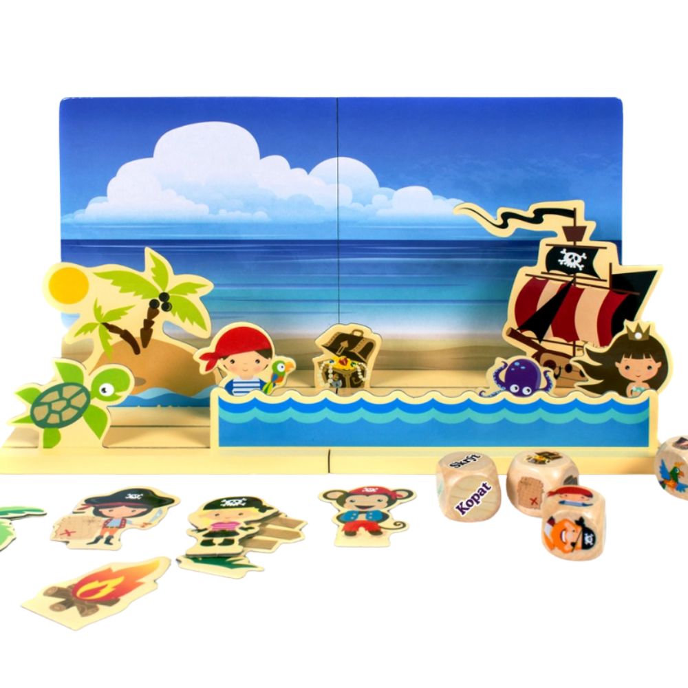 Staň se nejlepším vypravěčem o pirátech. Hrací kostky určí osnovu příběhu, ale zbytek dobrodružství je jenom na tobě a tvé fantazii.