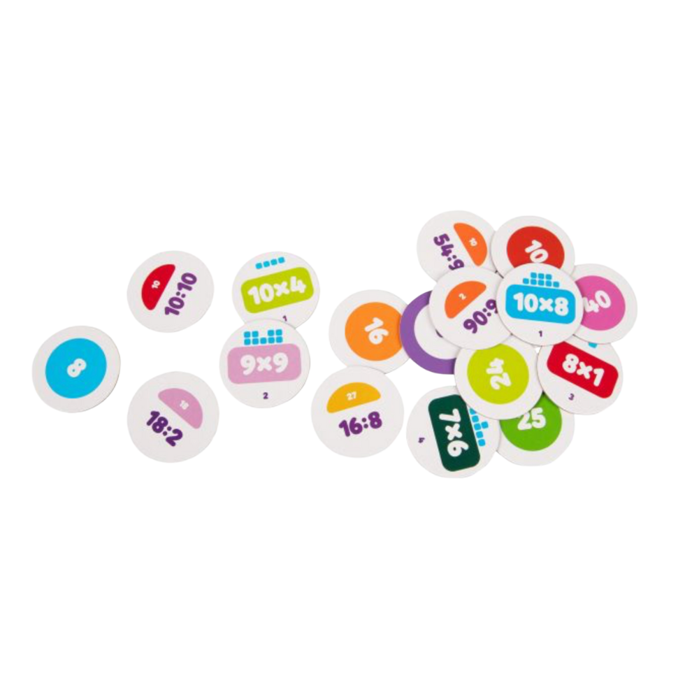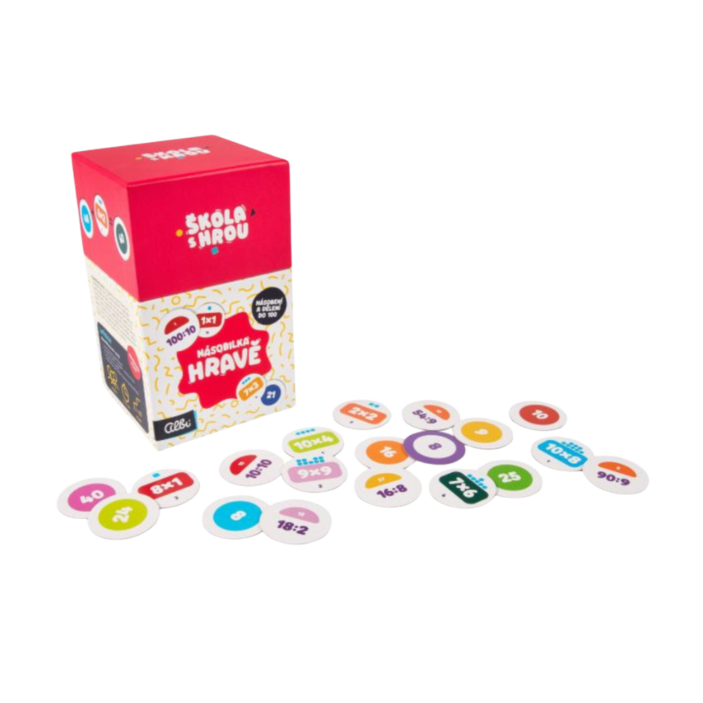 Sada Škola s hrou - Násobilka hravě obsahuje: 200 kulatých žetonů, příručku s metodickými tipy.