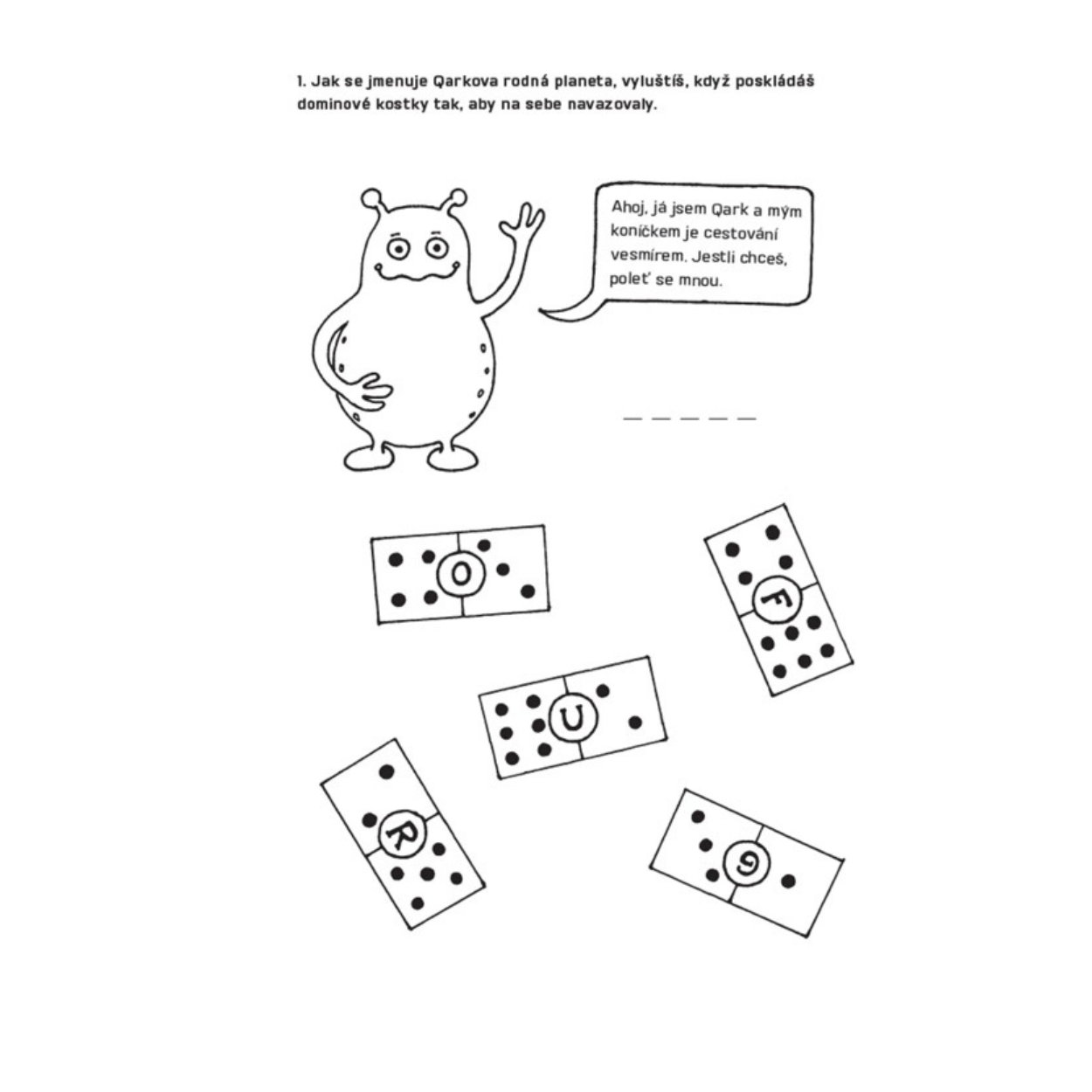 Mimozemšťan Qark cestuje se svým kamarádem Xylem vesmírem. Pokud rádi luštíte křížovky, písmenková domina, číselné spojovačky, máte rádi bludiště a doplňovačky, můžete se vydat s nimi. Na cestě se dozvíte ještě něco z vesmíru, třeba jak se jmenuje naše nejbližší hvězda, z čeho jsou vytvořeny okolní planety, co na nich najdete a mnoho dalšího.